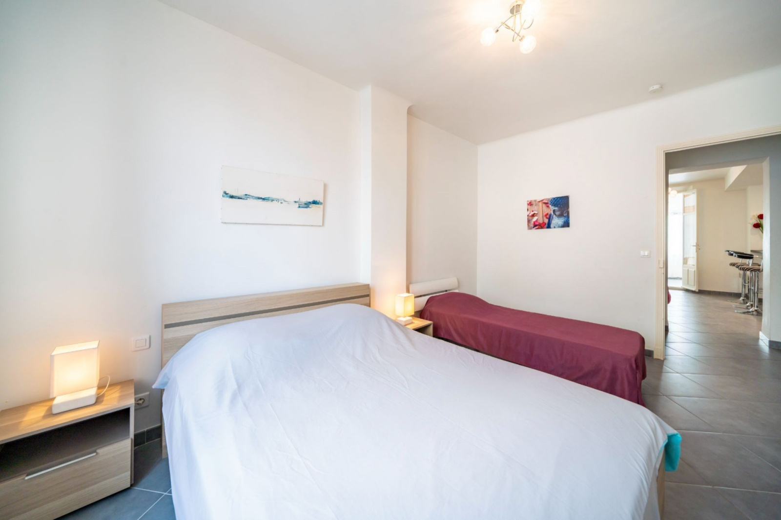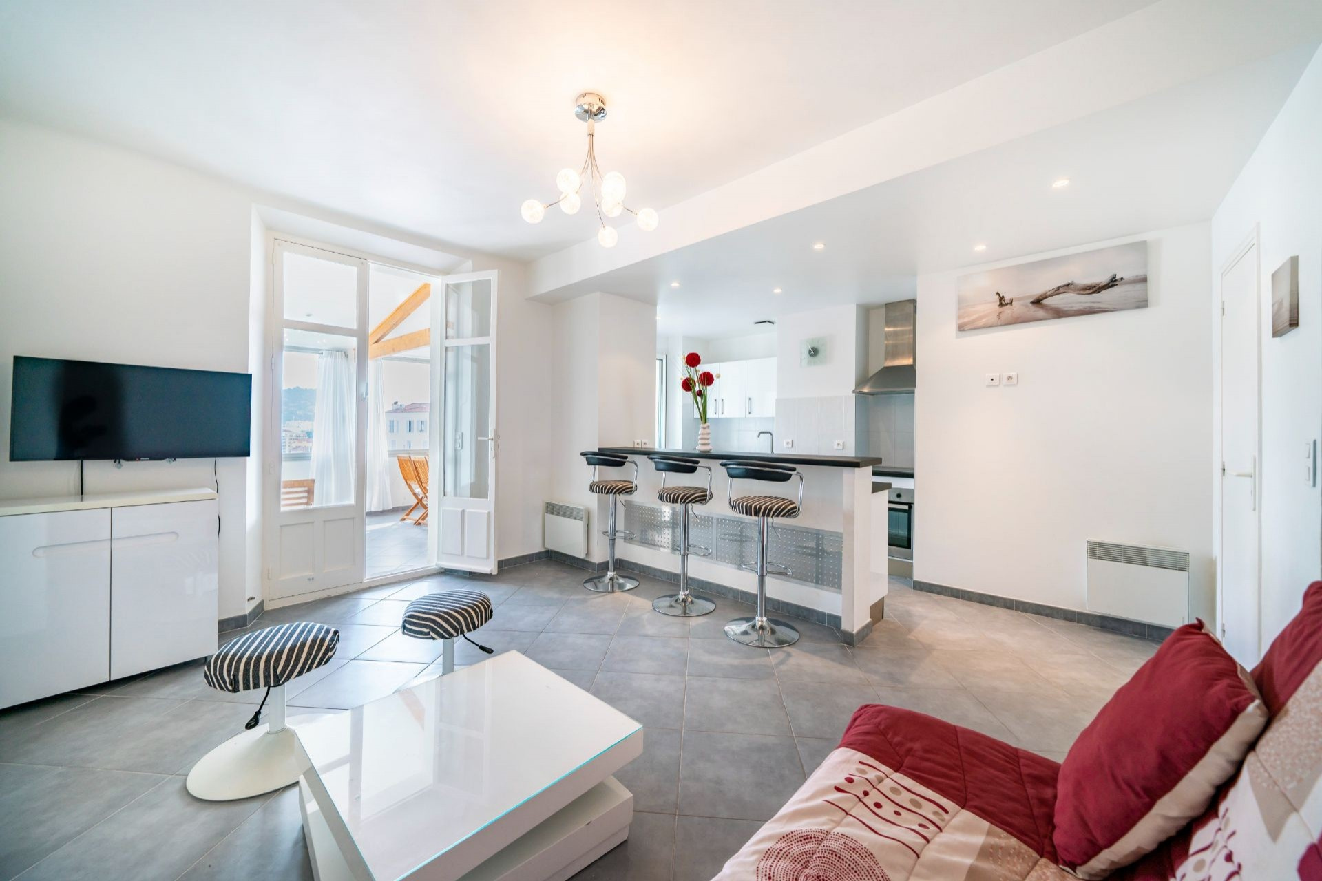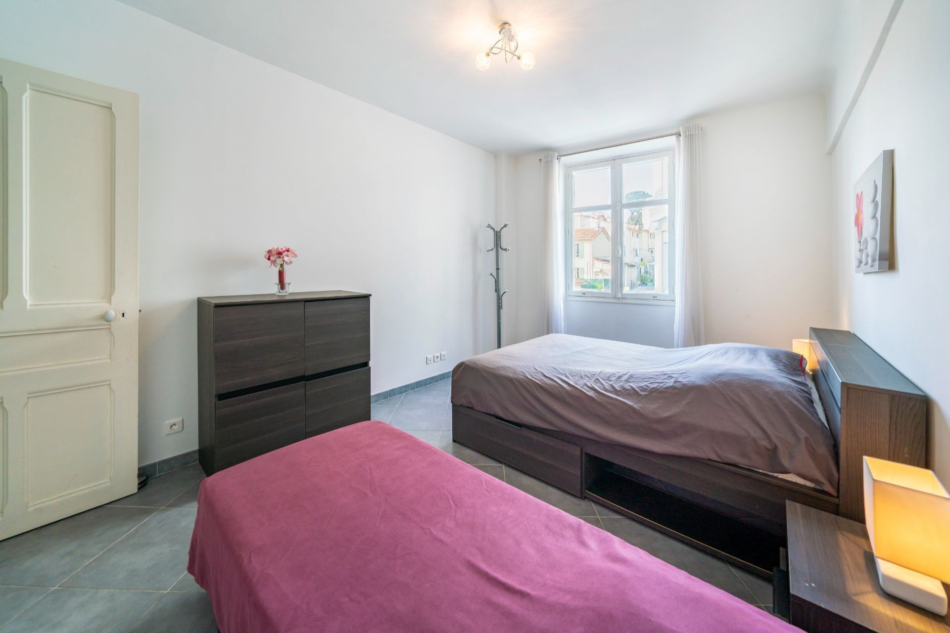 Quartier Stanislas/Avenue de Grasse à proximité du marché Forville. Appartement 3 pièces - disposant de 2 chambres et d'une surface habitable de 67.83 m² dans une copropriété de 8 appartements au calme avant-dernier étage sans ascenseur. Orientée Traversant Est/Ouest. Terrasse de 22.72m² fermée en véranda. Stationnement assuré avec une place de parking. Résidence sans ascenseur.